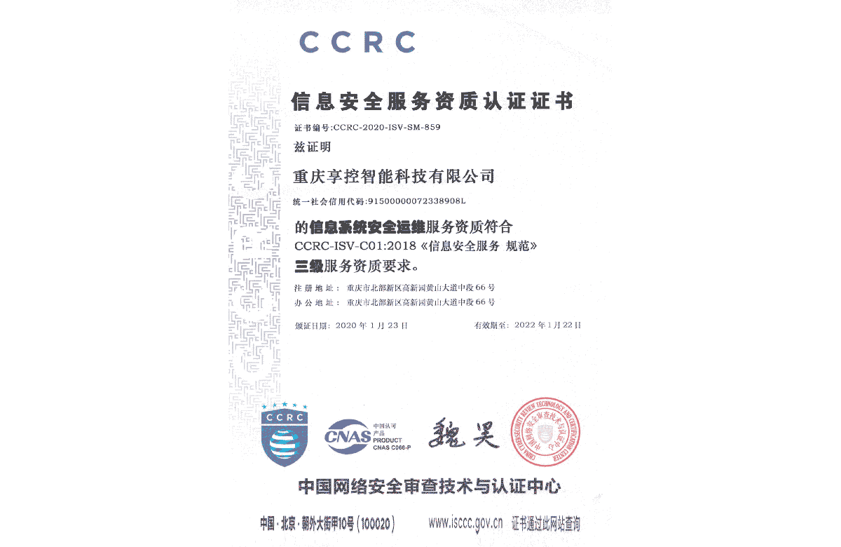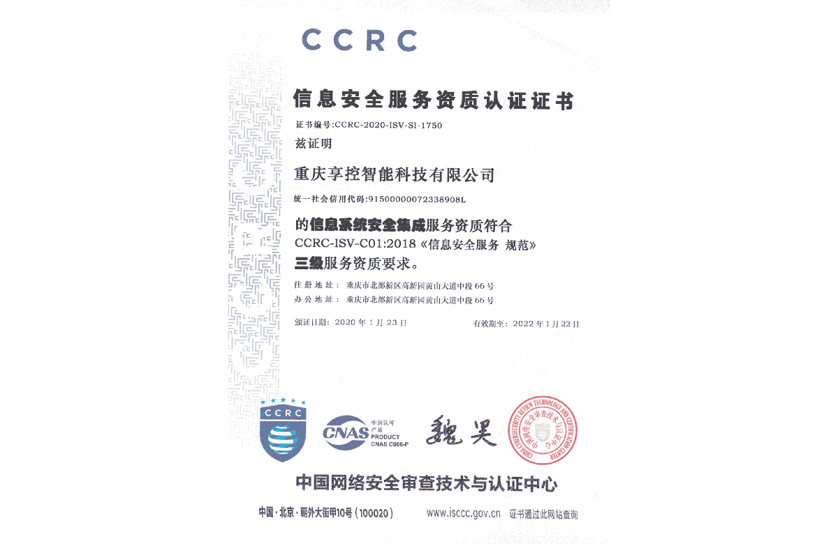 榮獲CCRC信息安全服務資質(zhì)