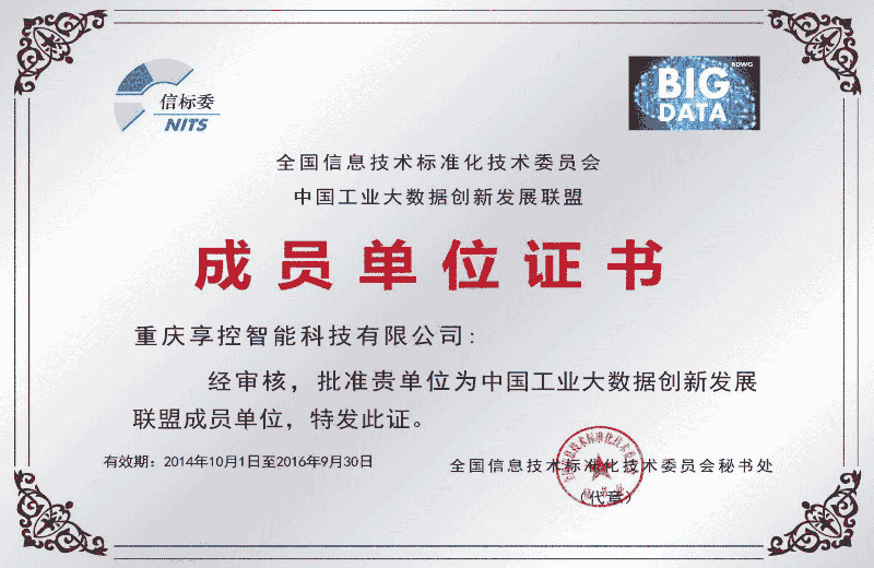 全國信標委批準重慶享控智能科技有限公司為“大數(shù)據(jù)標準工作組全權成員單位”